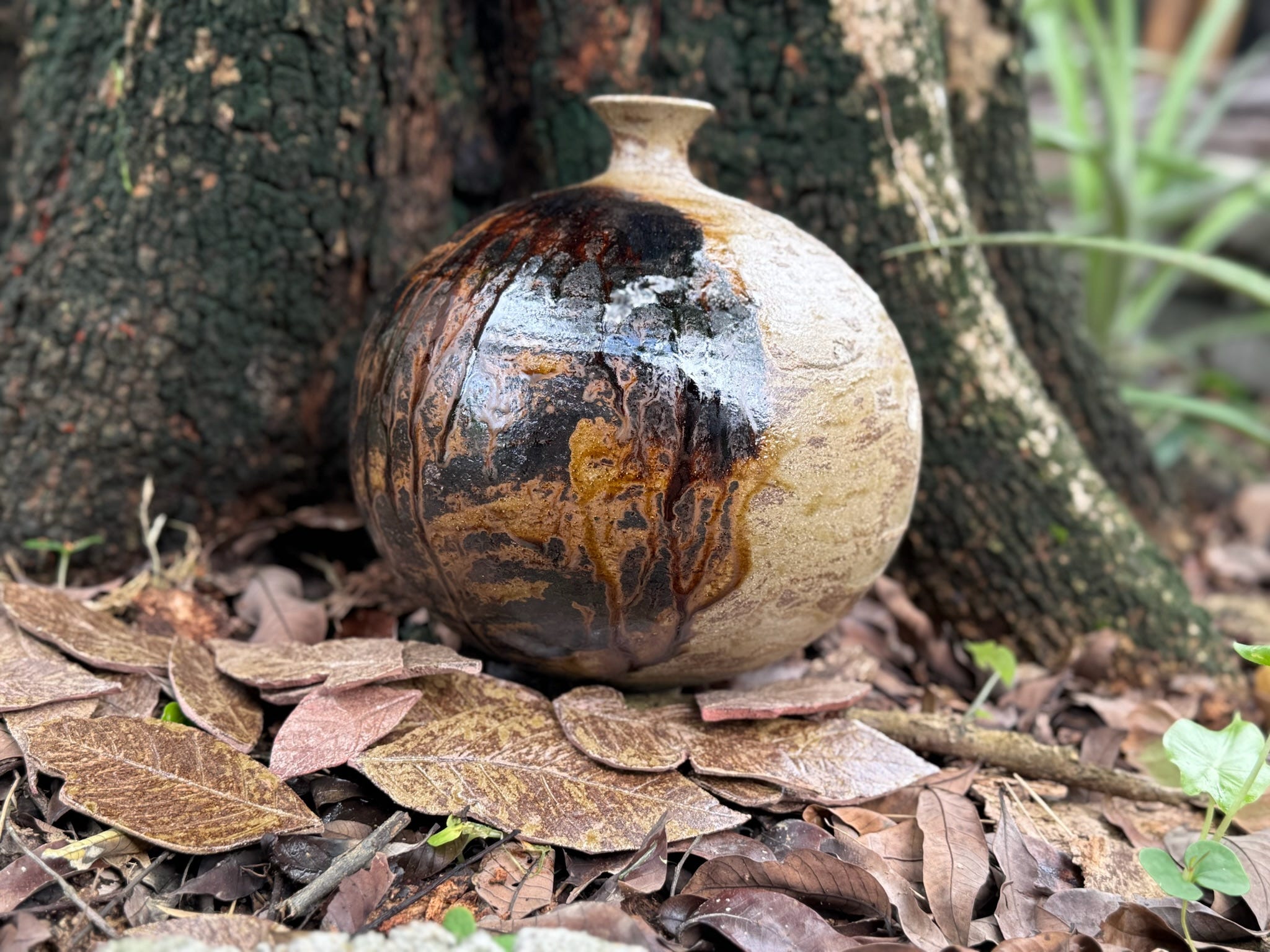 製作wild clay陶器的過程,就是在學習如何與自然和時間共舞。岩石風化成泥的時間(需時千萬年),陶泥沉澱的時間(泥土加水過濾後靜置,會慢慢沉澱成澄清的泥),晾乾泥土的時間(用布袋把泥吊起來,一滴一滴地去水),把泥土踩出韌性的時間(在瀑布旁,夾雜著非洲鼓的鼓點,有節奏的舞步),在爐火中等待的時間(用的是西德的古早電窯,下大雨停電就要再來一次)。碎裂的陶器又回到泥土。
