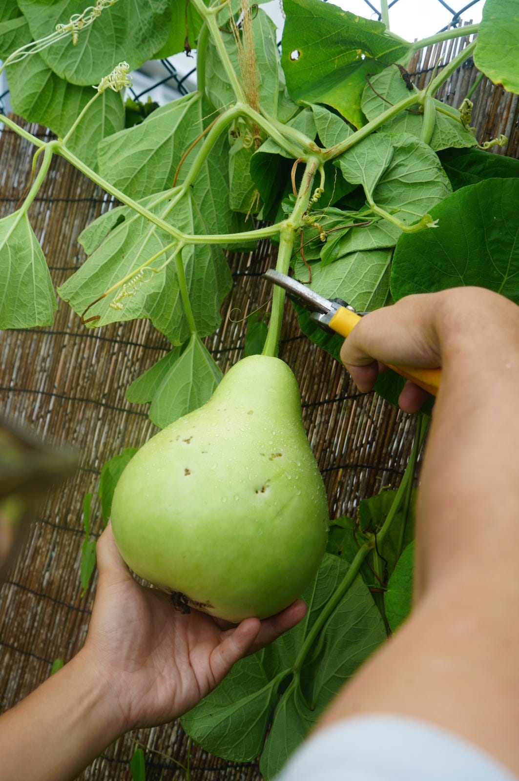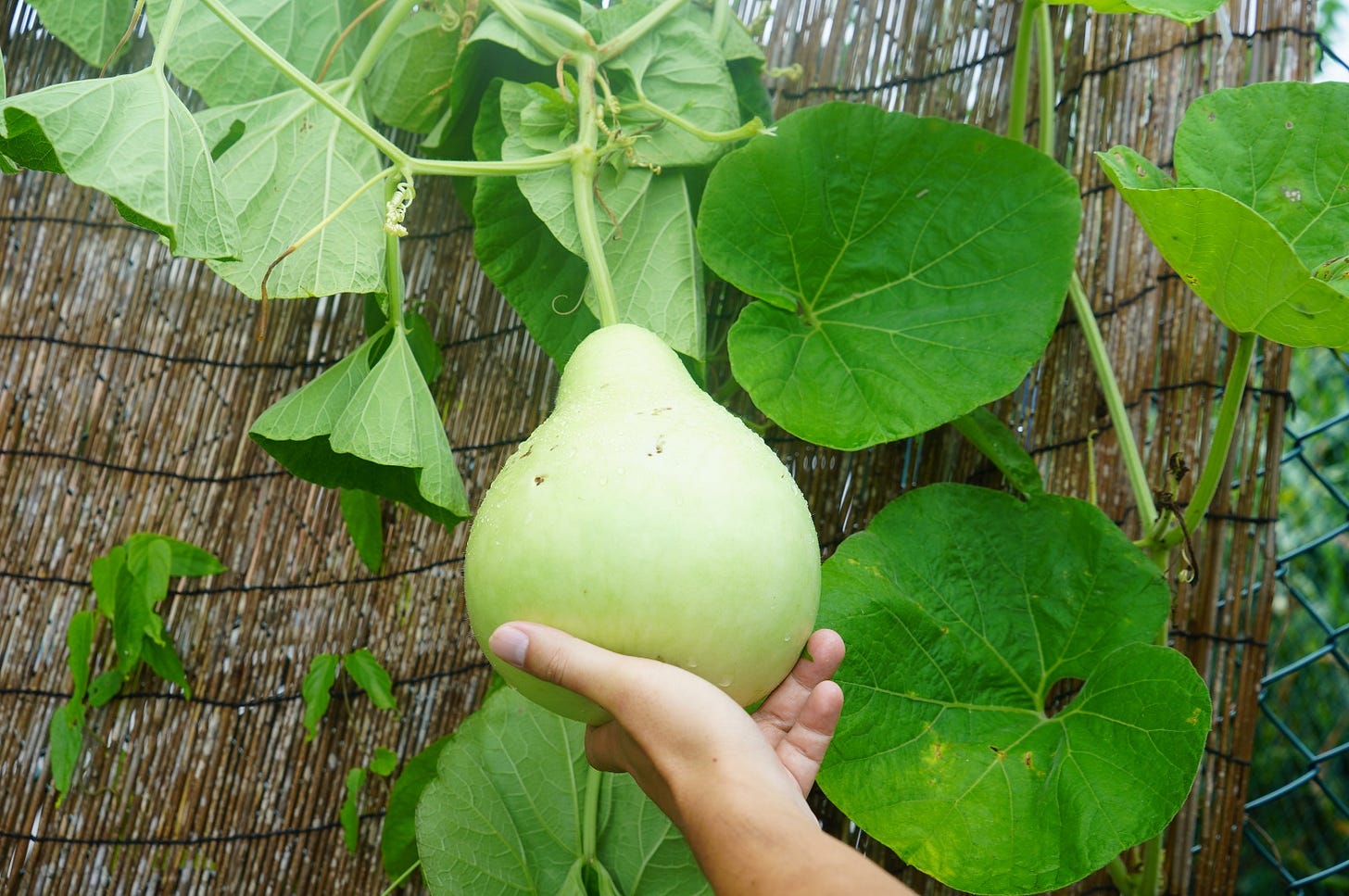 早晨起床時,揉著眼睛站在窗前,忽然發現花園裡那棵沿著圍欄生長的蒲瓜藤,掛著一顆圓滾滾的蒲瓜。之前從未發現過。簡直就像是用photoshop粘貼上去的那樣。